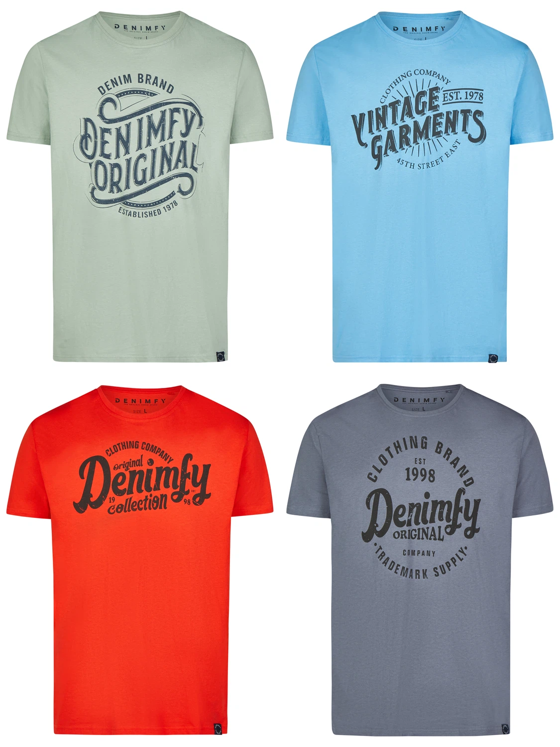 Die Shirts des Labels DENIMFY erhalten Sie in vielen frischen Farben. Wählen Sie nach Gusto Schwarz, Grau, Blau, Grün, Rot, Weiß und Navy aus. Ebenfalls breit gefächert ist das Angebot die Größen betreffend. Neben den klassischen Größen S, M, L und XL gibt es das Oberteil ebenfalls in der Übergröße 2XL, 3XL, 4XL und 5XL.