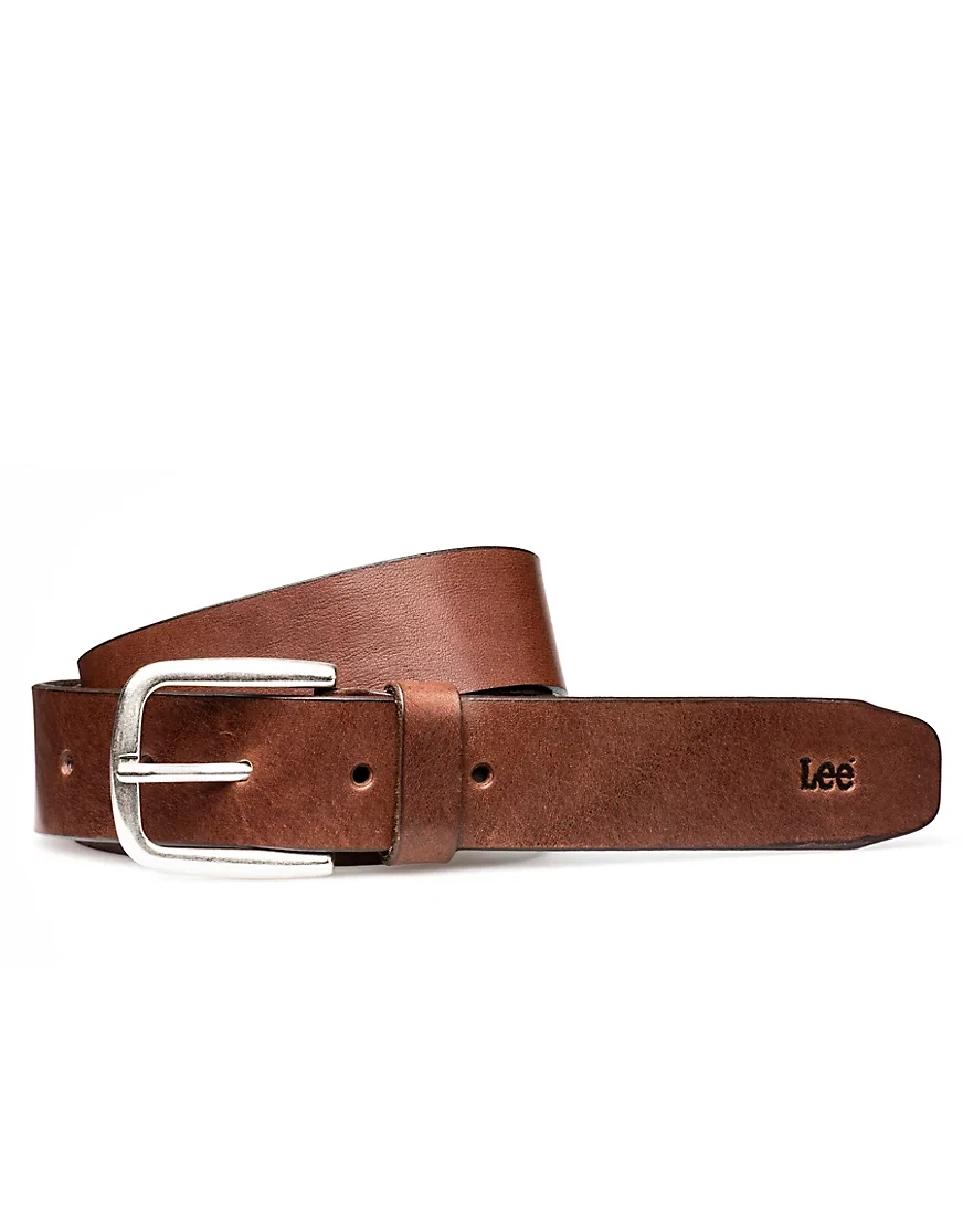 Dieser reine und robuste dunkelbraune Gürtel aus Rindsvollleder ist mit einer silbernen Schnalle und einem Verschluss mit nur einer Zunge versehen und wird mit dem Alter nur noch schöner. Das Lee-Logo ist in der Nähe der gegehrten Spitze eingeprägt.