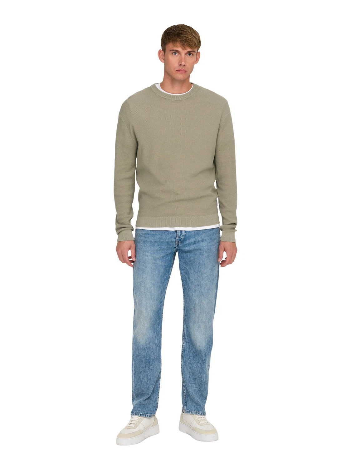 Der Regular-Pullover Only & Sons "ONSTONY DS 12 LS WAFFLE CREW KNIT" mit Rundhals-Ausschnitt kombiniert klassische Eleganz mit sportlicher Lässigkeit. Männer machen nicht jeden Hype mit – aber natürlich legen auch sie Wert auf einen guten Look. Trotzdem sollte ein Pullover in erster Linie gut sitzen und bequem sein.