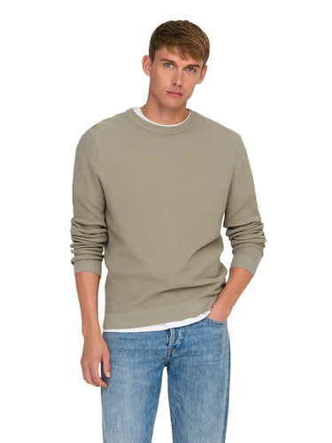 Only & Sons Herren Pullover "ONSTONY DS 12 LS WAFFLE CREW KNIT" mit Rundhals, verschiedene Farben, uni