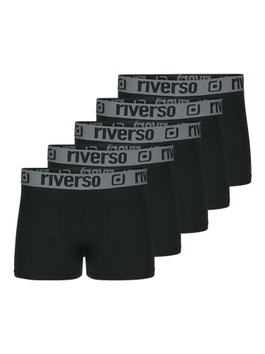 riverso Herren Basic Boxer RIVHarry 5er Pack mit einem angenehmen Tragegefühl durch den hohen Baumwollanteil. Der elastische Taillenbund sorgt für maximalen Tragekomfort und auch der Beinausschnitt ist so konzipiert, dass dieser in keiner Weise einschneidet. Es wurde bewusst auf störende Etiketten verzichtet, die Marken- und Pflegehinweise sind innenseitig eingeprägt. Als besonderer Eyecatcher dient das umlaufende riverso Logo am Hosenbund.